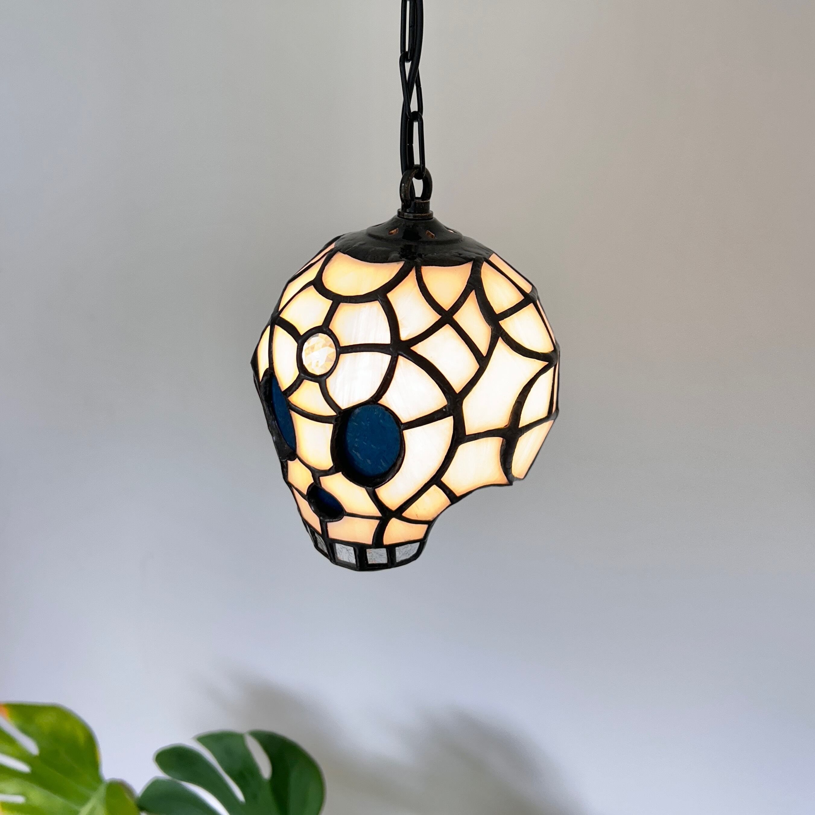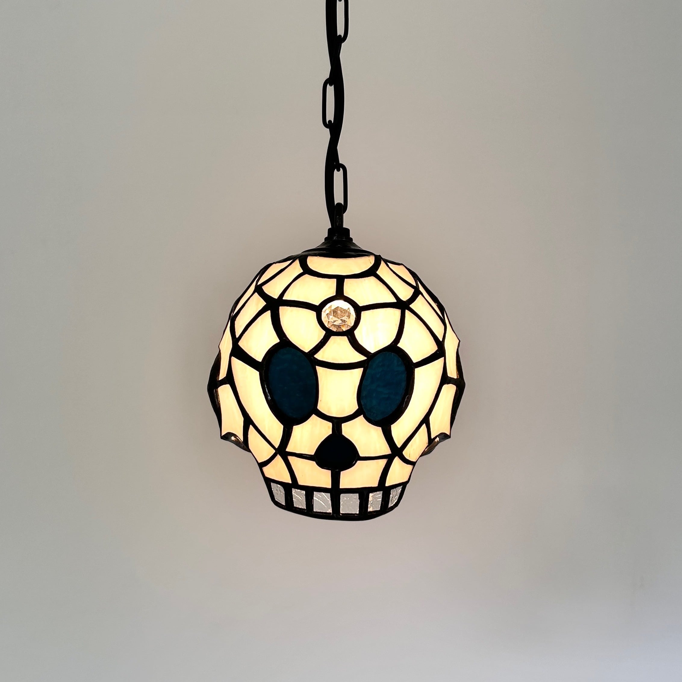 手のひらサイズのシンプルなドクロのステンドグラスランプです。