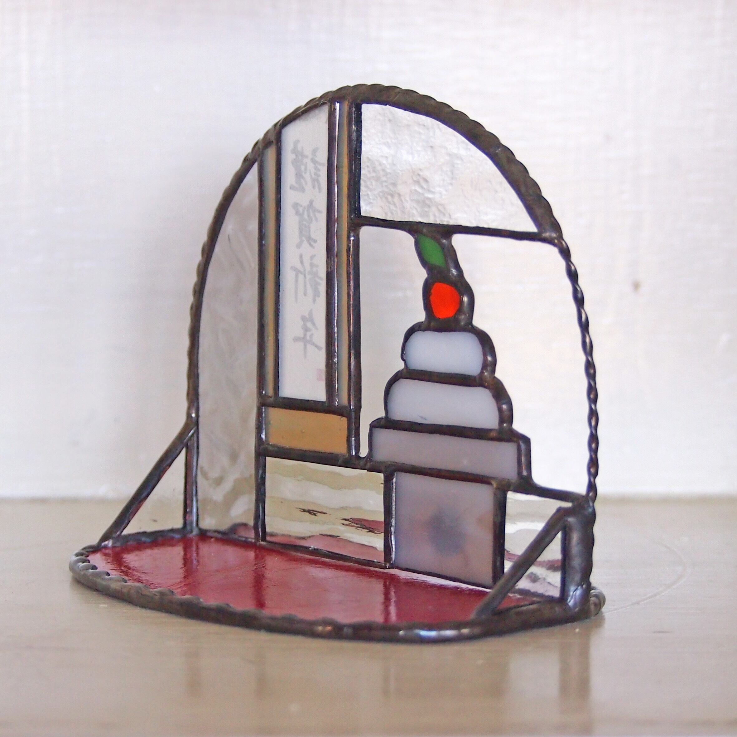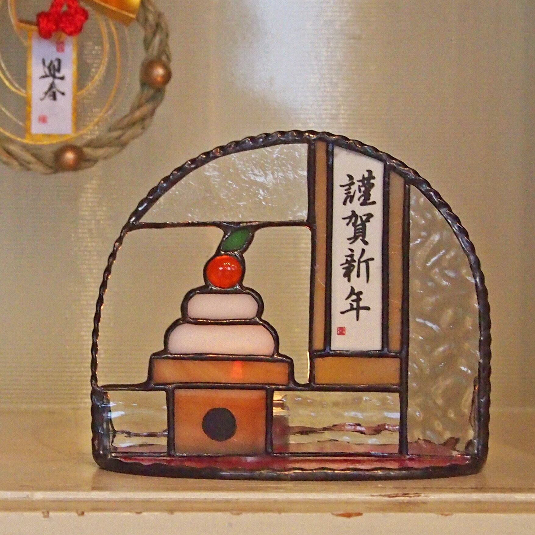 謹賀新年の部分は、2ミリの2枚のガラスでプリントした紙をサンドして作っております。ですので、お好きな文字に変更する事が可能です。ご要望がおありでしたらご注文の際にお知らせください。